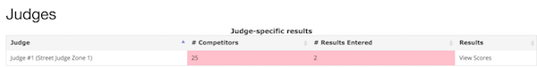 The Event director can configure a number of judge users for each of 3 different "zones". Each judge will be able to enter results
